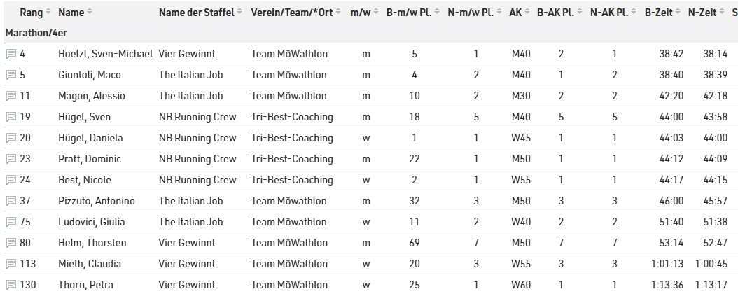 Die Resultate aller LäuferInnen können sich sehen lassen, sowohl in der Gesamt- als auch in den Alterklassenwertung. Es sind einige erste Plätze dabei. Herzlichen Glückwunsch an alle und gute Erholung.