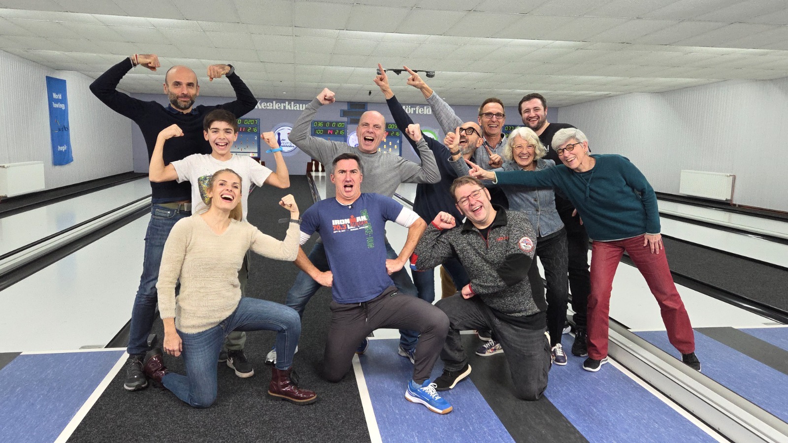 Manch einer hatte seit Ewigkeiten nicht mehr oder noch nie gekegelt. Deswegen stand am Anfang erst einmal ein freies Kegeln an; einfach versuchen, die Kugel nach vorne zubringen und möglichst viele Kegel zum Umfallen bringen. Das klappte schon mit mehr oder weniger Dynamik ganz gut.