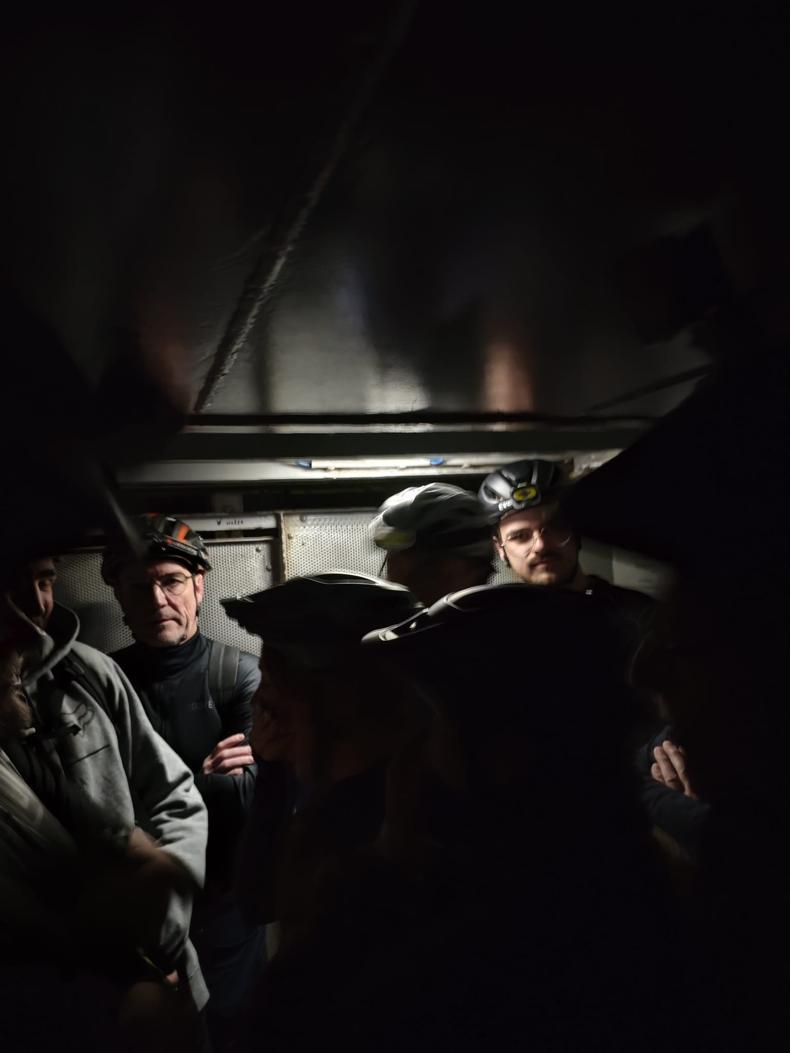 Anspannung im Korb bei der Seilfahrt auf die 500 m Sohle
