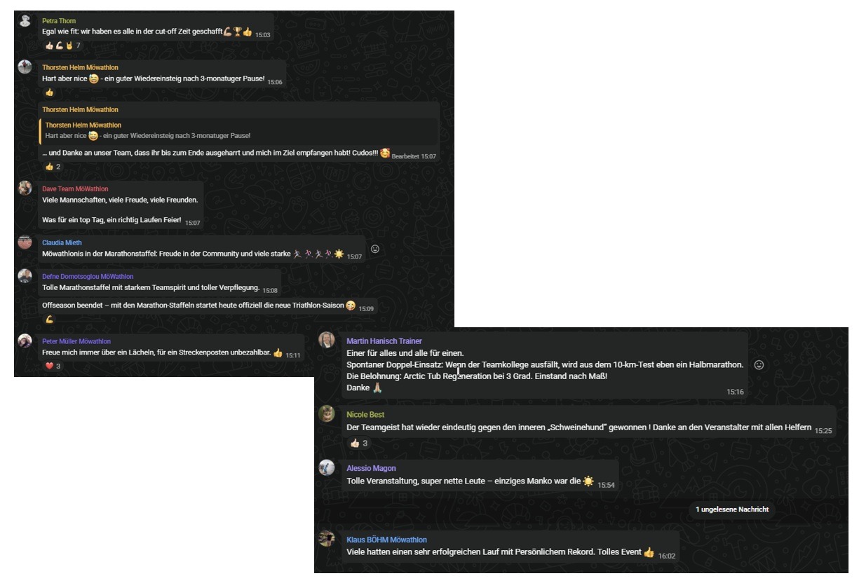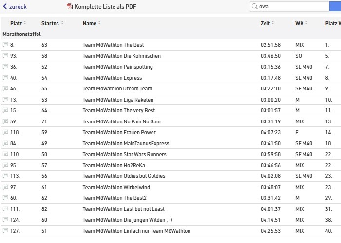 Auf jeden Fall lässt sich die Bilanz der Team MöWathlon Staffeln sehen. Alle haben ihr Ziel erreicht und gefinisht. In der Mixed Staffel konnte das Team MöWathlon The Best sogar den ersten Platz holen. In der SE 40 waren gleich drei Teams unter den Top Ten. Bei den Männern belegte das Team MöWathlon Die Liga Raketen einen starken 10. Platz.