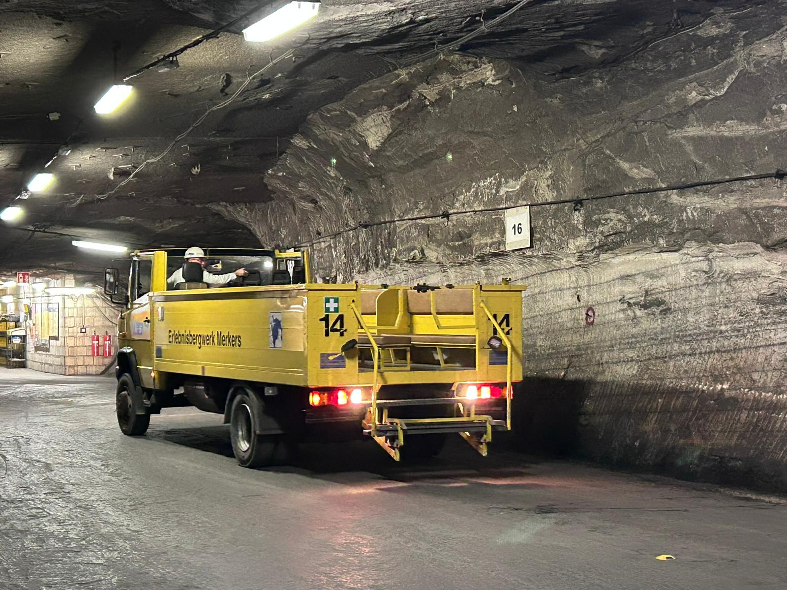 Mit dem LKW Cabrio geht es Richtung Rohsalzlager, und zwar zackig